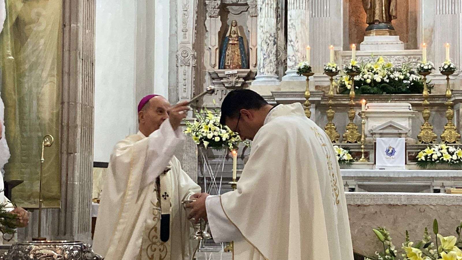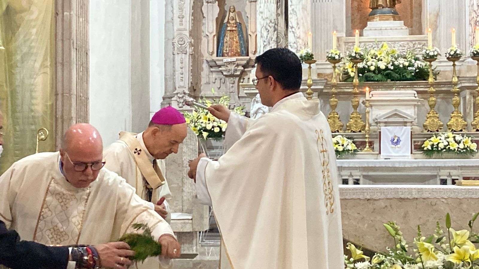Posteriormente el Arzobispo, realizó la bendición del agua que es el símbolo del bautismo que Jesús implementó cuando Juan el bautista lo bautizo con el espíritu Santo.