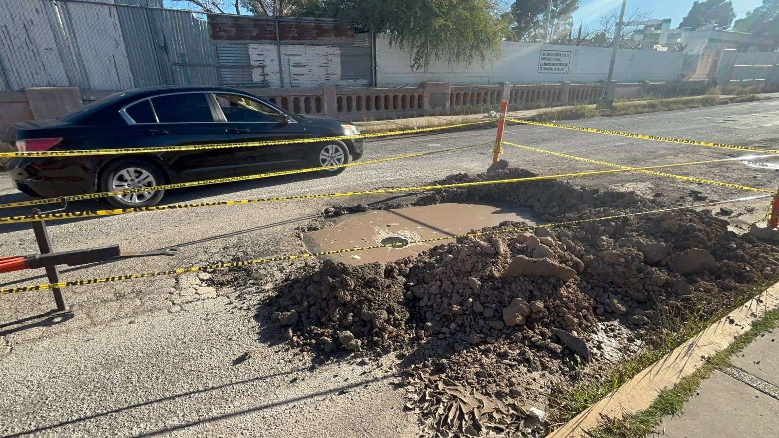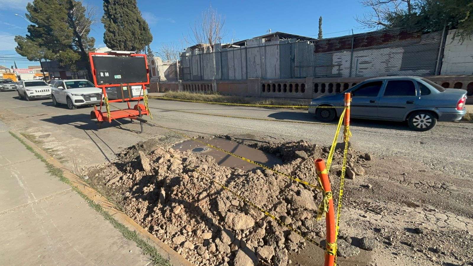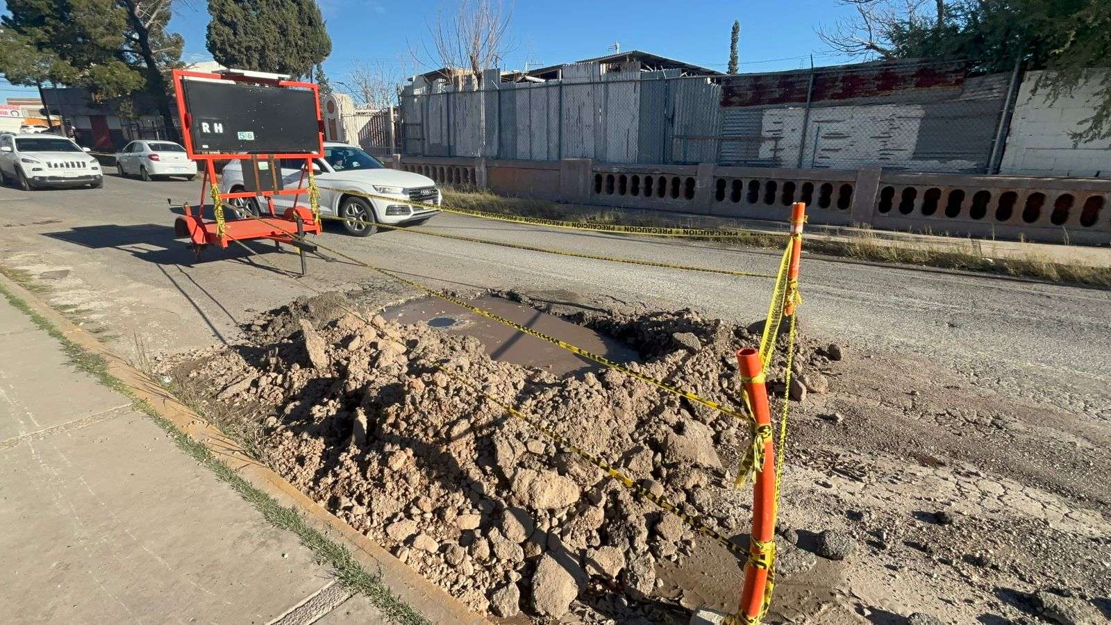 Chihuahua, Chih.– Un socavón se formó en la calle Roque Jacinto Morón, en la colonia Santa Rita, situación que fue reportada por automovilistas que circulan por la zona.