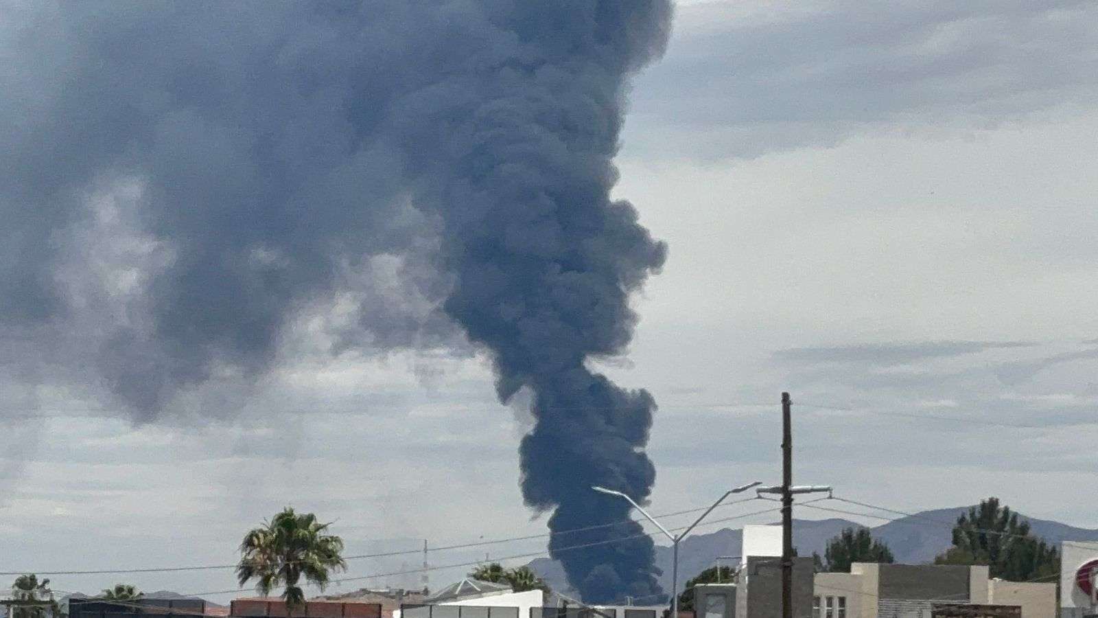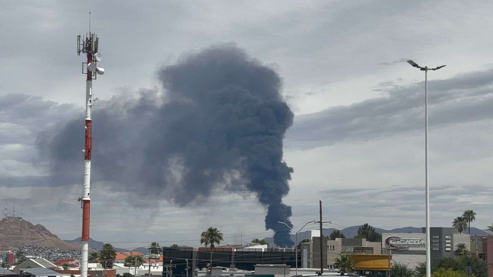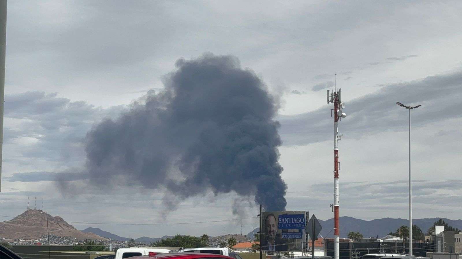 Chihuahua. - Un incendio de grandes proporciones se registra esta tarde al sur de la ciudad, generando una intensa columna de humo negro que es visible desde prácticamente cualquier punto de la capital.