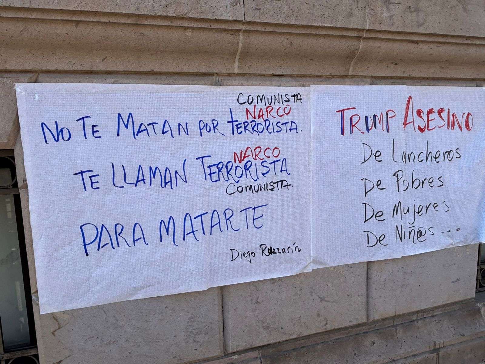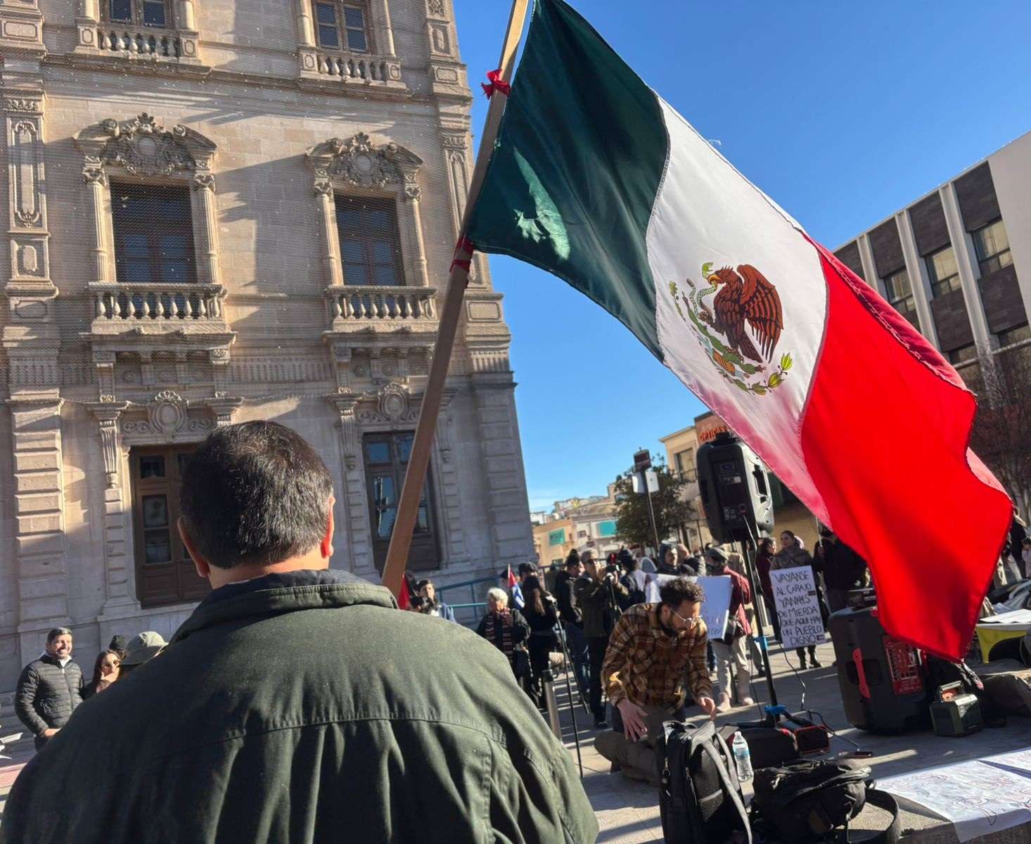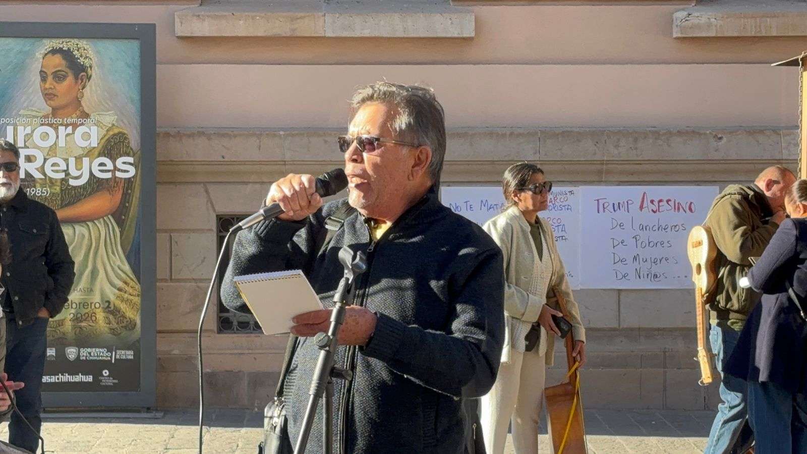 Chihuahua. – Un nutrido grupo de personas se manifestó la tarde de este sábado frente al Museo Casa Chihuahua para expresar su rechazo a la intervención del gobierno de Estados Unidos en Venezuela.