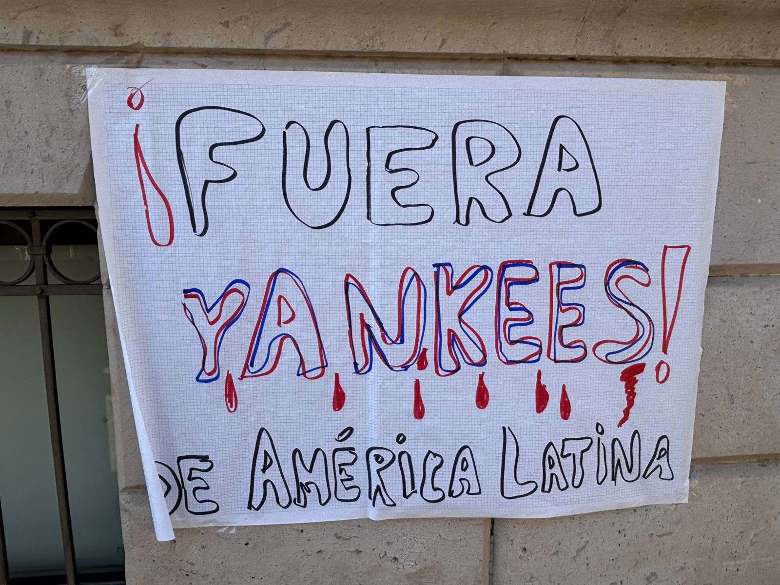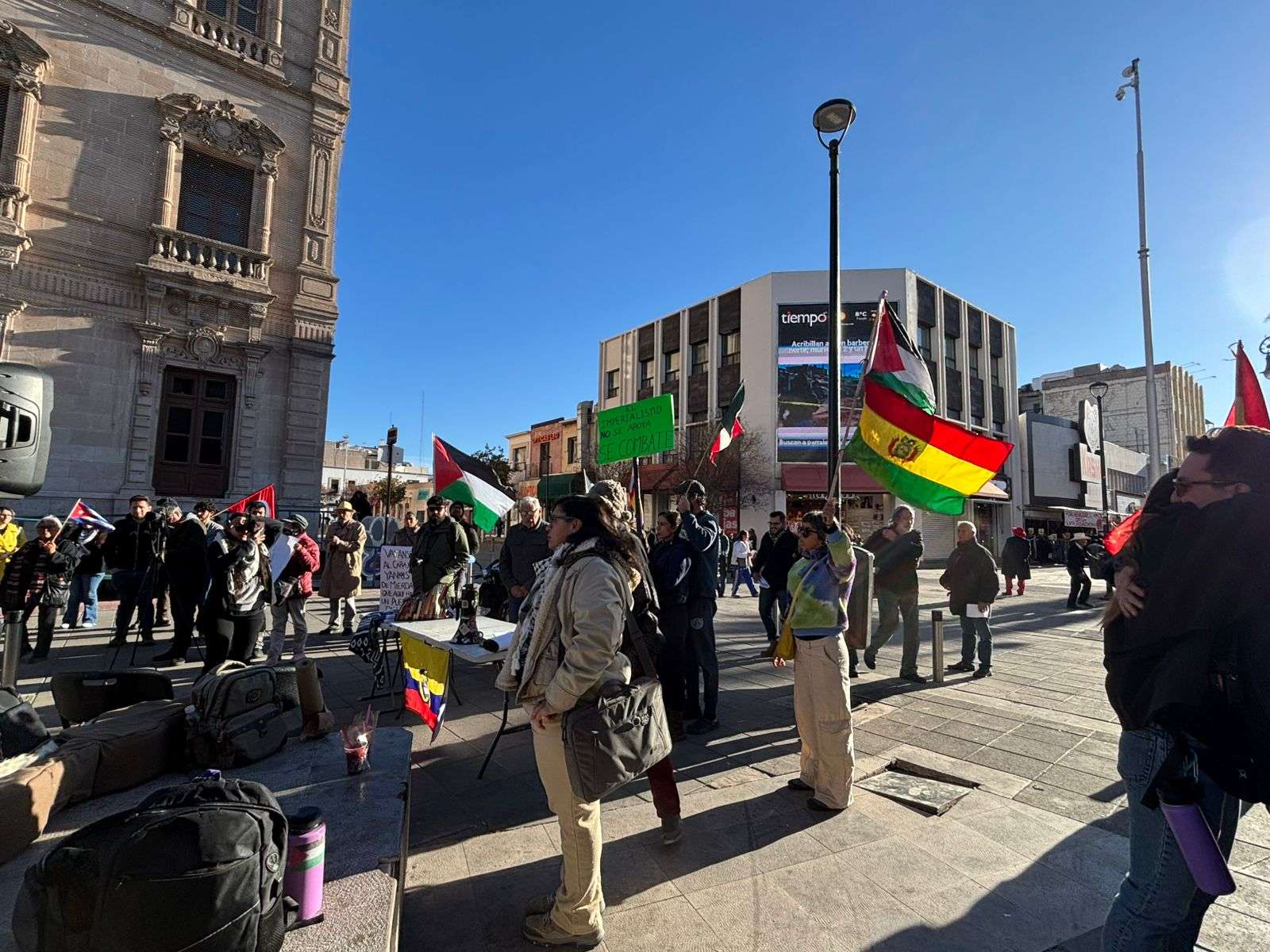 Durante la protesta, los oradores señalaron que condenan lo que consideran una invasión a la soberanía de los países de América Latina, atribuyéndola a las políticas impulsadas por el presidente estadounidense, Donald Trump.