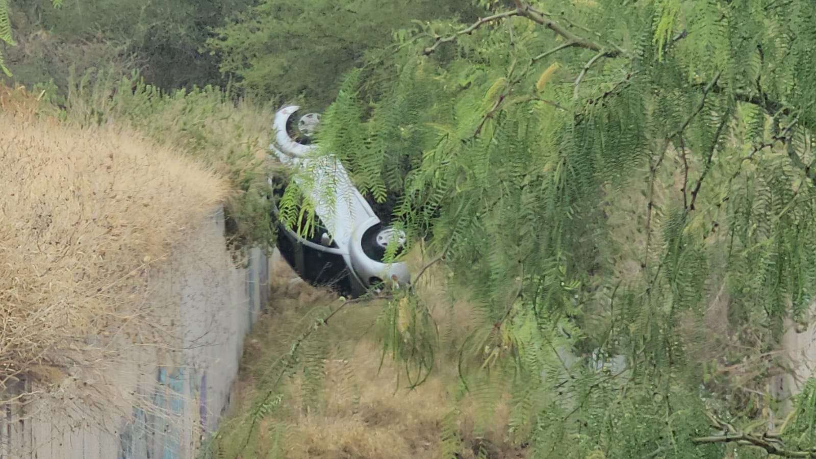 De acuerdo con los primeros reportes, la mujer circulaba en su vehículo particular, un Volkswagen Beetle, cuando perdió el control debido al pavimento mojado, lo que provocó que derrapara, se impactara contra la valla de contención y terminara al interior de un arroyo.