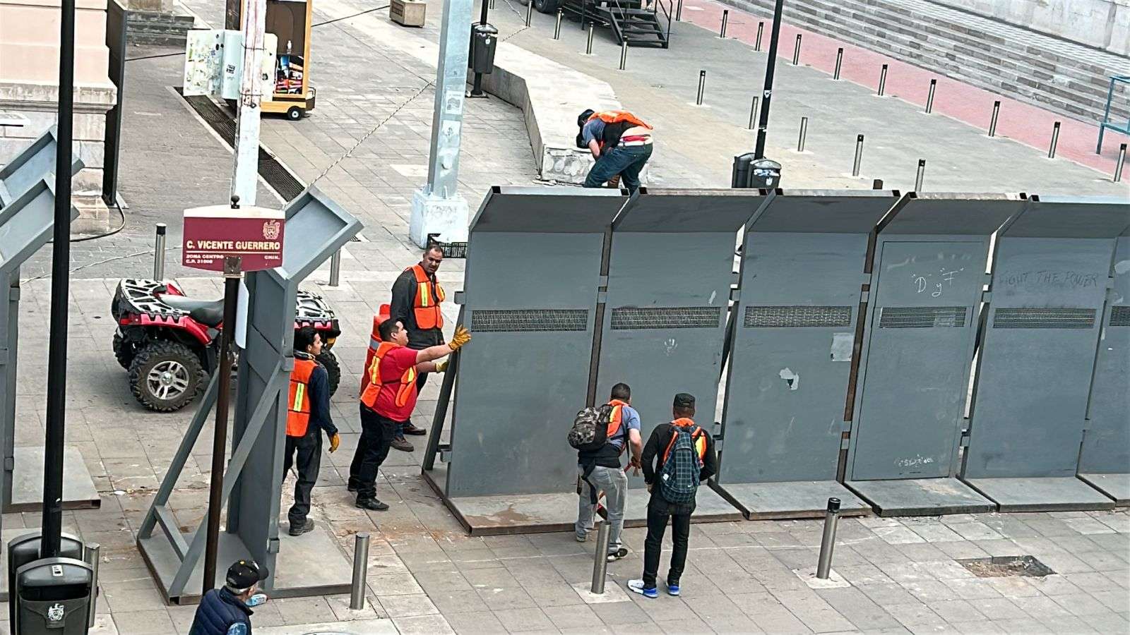 Cuadrillas de trabajadores se presentaron en el perímetro del centro histórico para retirar las estructuras que rodeaban los inmuebles protegidos.
