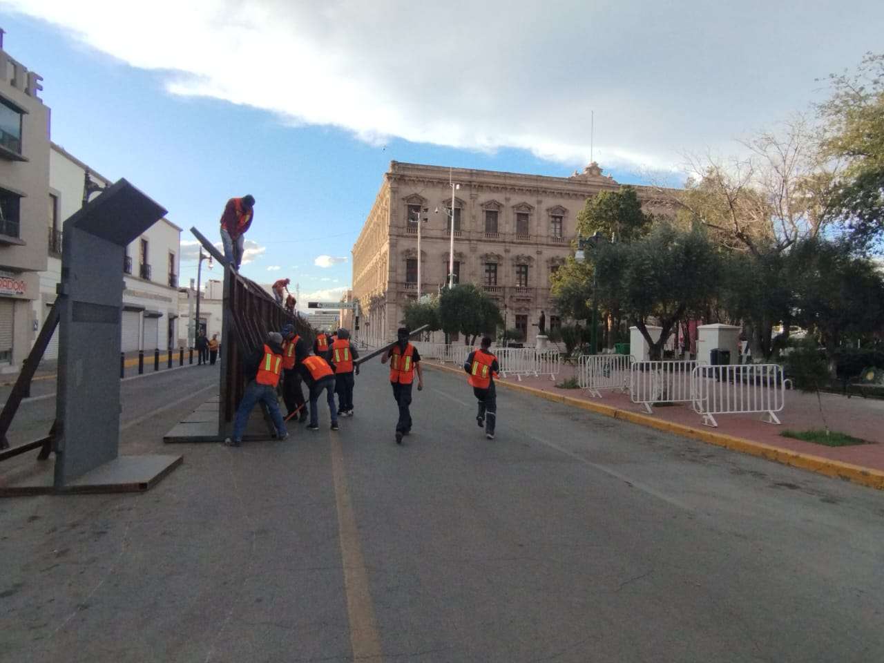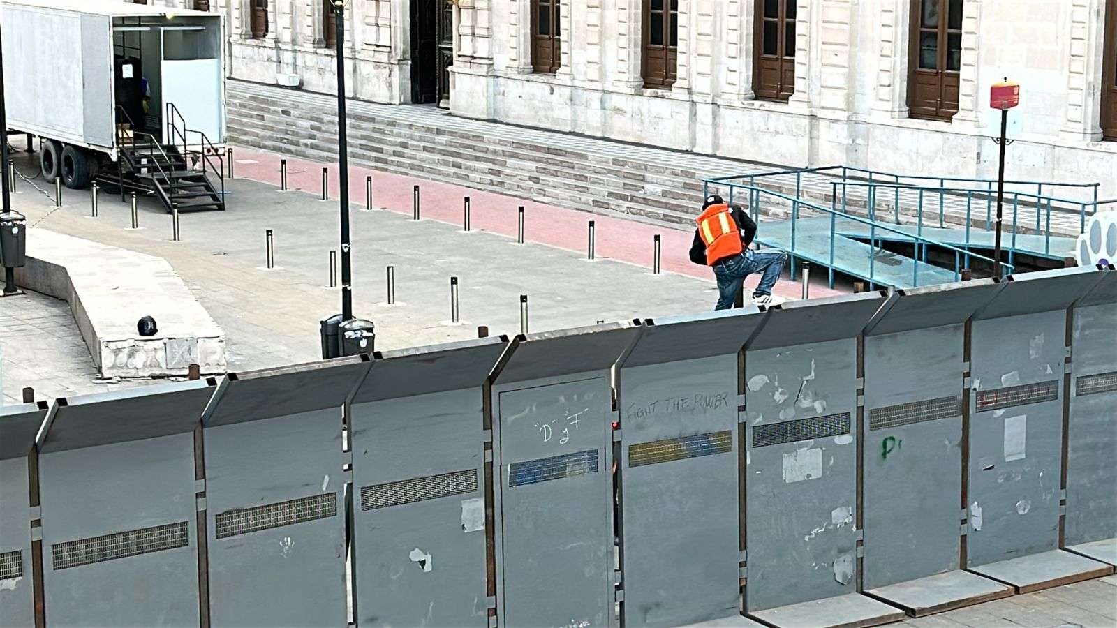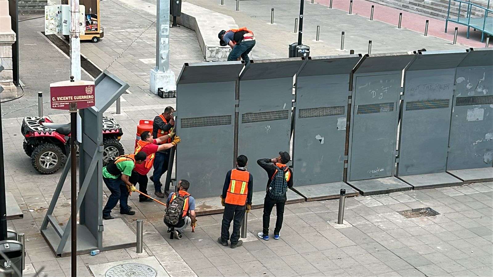 Chihuahua, Chih.- Esta tarde, el Gobierno del Estado inició el desmontaje de las vallas metálicas que resguardaron los edificios públicos durante las movilizaciones por el Día Internacional de la Mujer (8M).