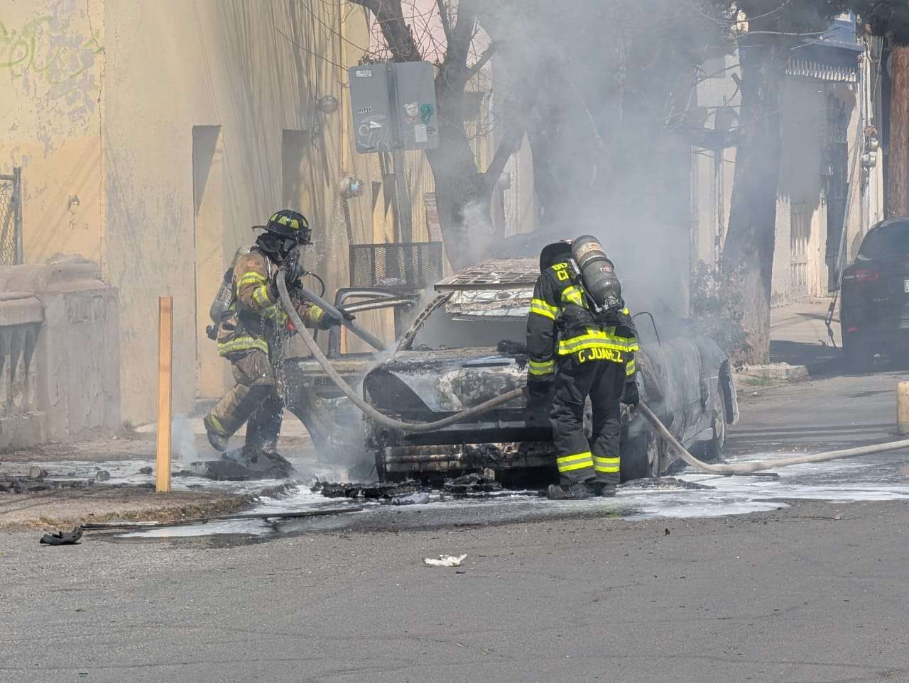 Chihuahua.- En el cruce de la calle Novena y Mariano Jiménez, en el centro de la capital, se registró el incendio de un automóvil marca Grand Am de color gris y modelo antiguo.