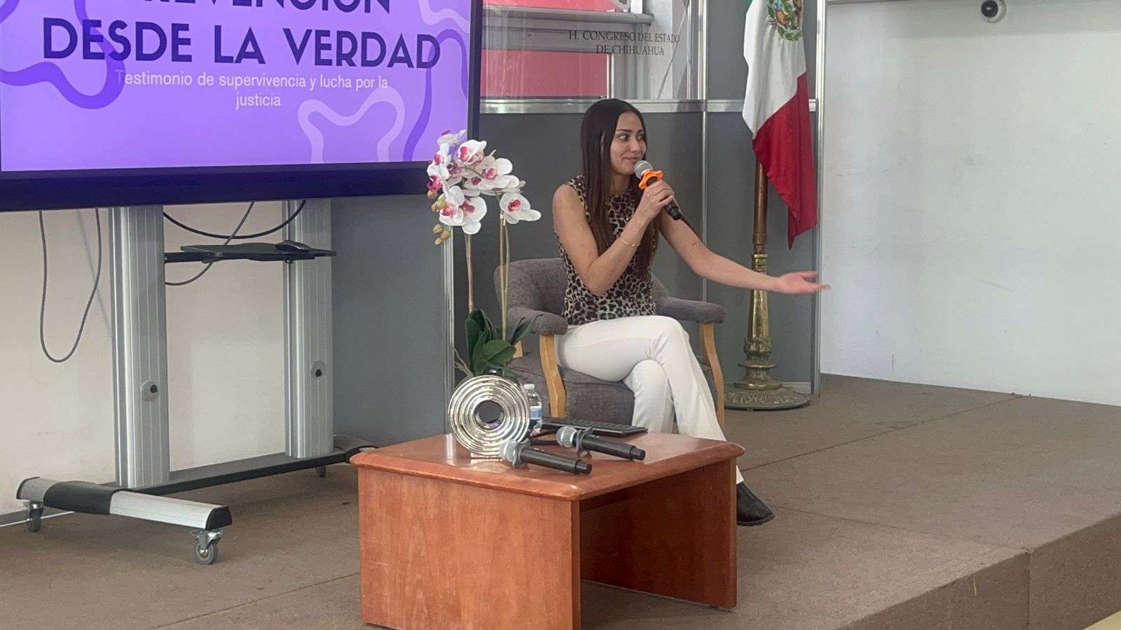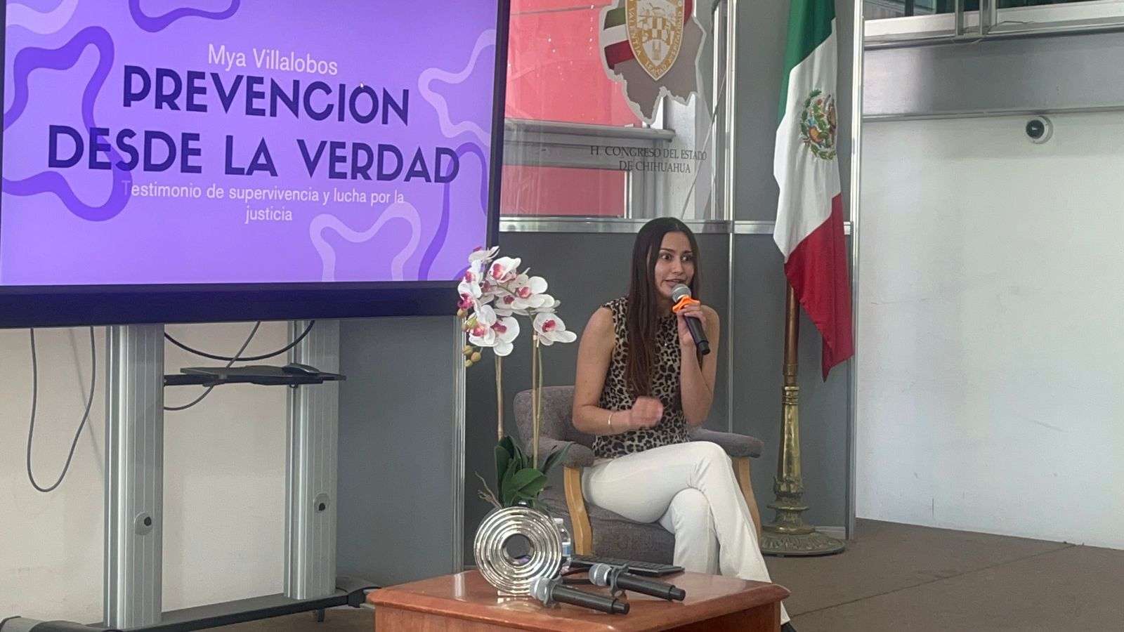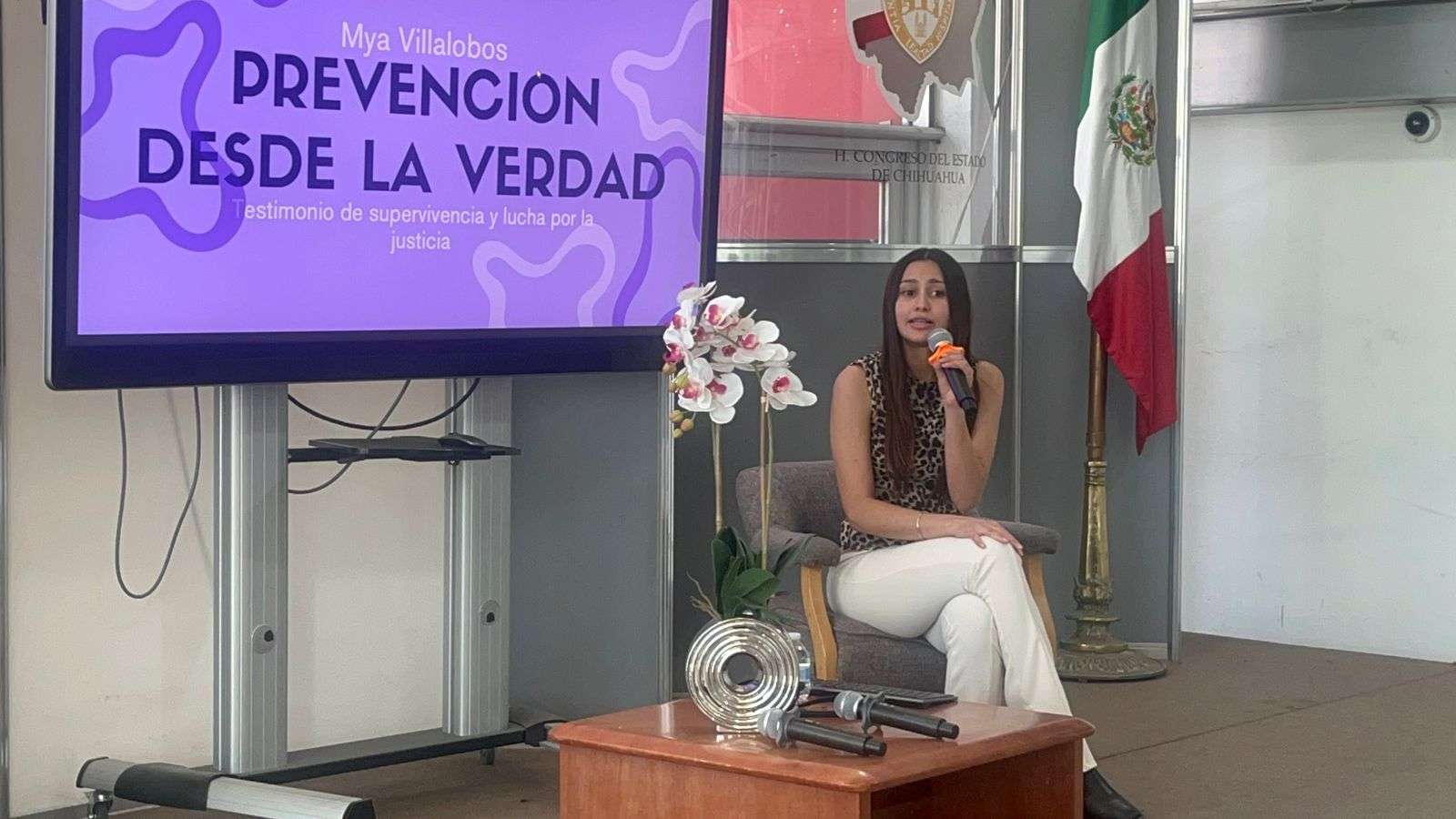Chihuahua.– La Unidad de Igualdad de Género del Congreso del Estado presentó a Mya Villalobos, quien compartió ante la ciudadanía y medios de comunicación su testimonio de supervivencia, así como la lucha que ha emprendido para que su caso sea reclasificado como intento de feminicidio y sirva como base para una reforma al Sistema Integral de Justicia Penal para Adolescentes a nivel nacional.