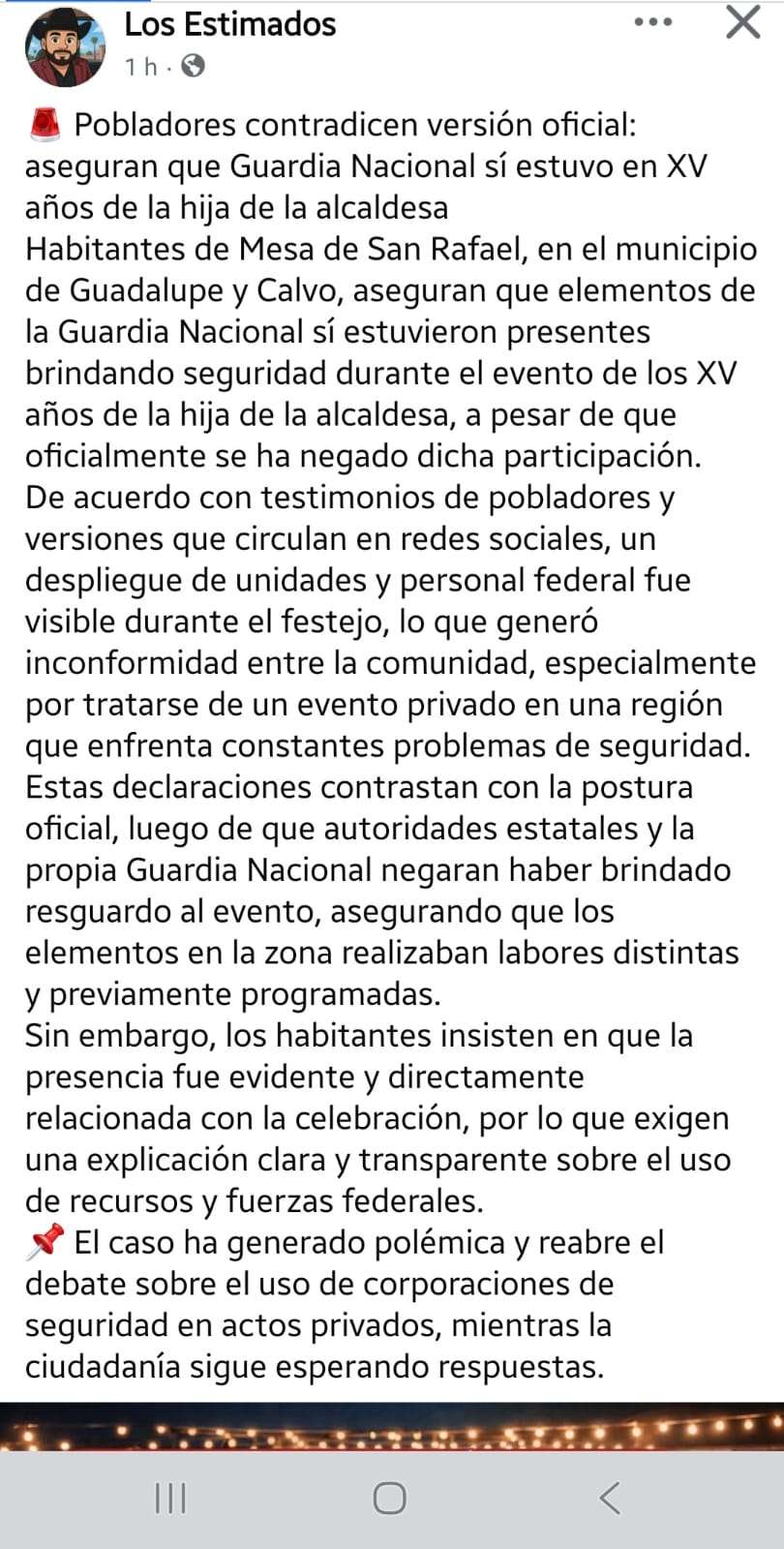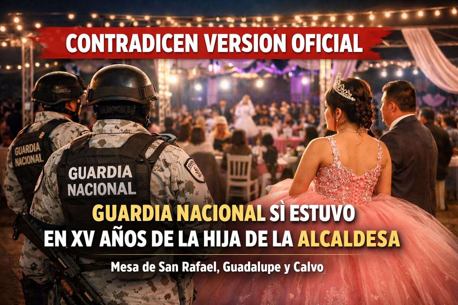 Chihuahua. – Mientras que el coordinador de la Guardia Nacional (GN) en Chihuahua, Alejandro Rivas, aseguró que efectivos de esa corporación no estuvieron en la fiesta de 15 años de la hija de la alcaldesa de Guadalupe y Calvo, residentes de ese municipio aseguran lo contrario.