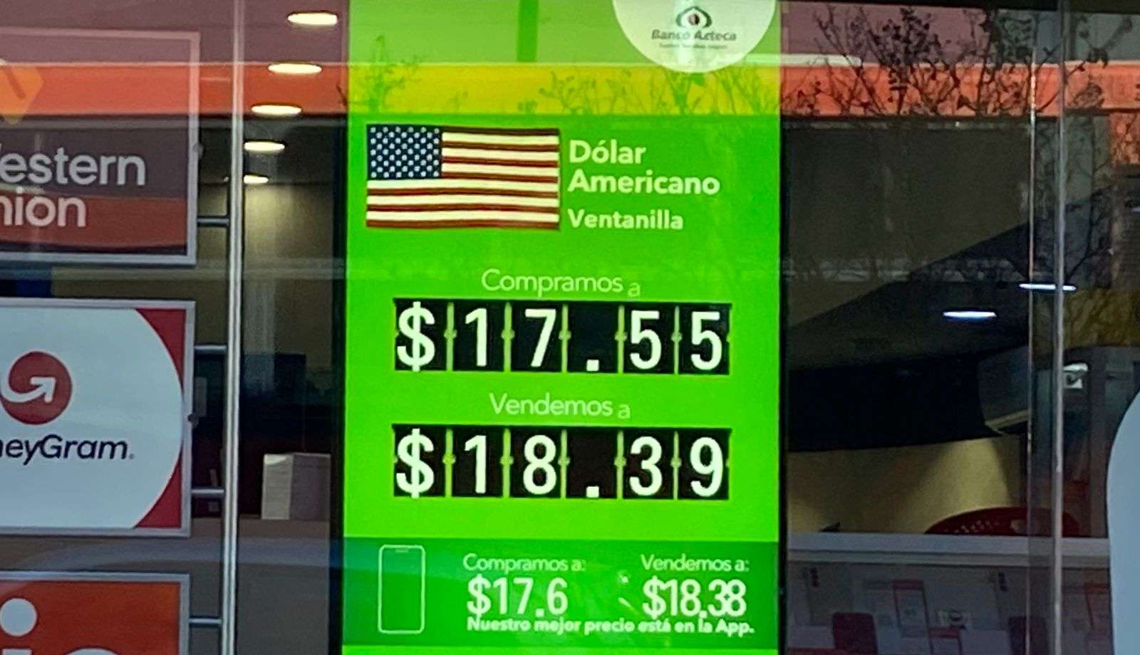 En las ventanillas de Banco Azteca ubicada en la calle Cuarta y Aldama, la cotización del billete verde fue de $18.39 a la venta y de $17.55 a la compra por lo que la cotización se mantuvo igual que ayer viernes.