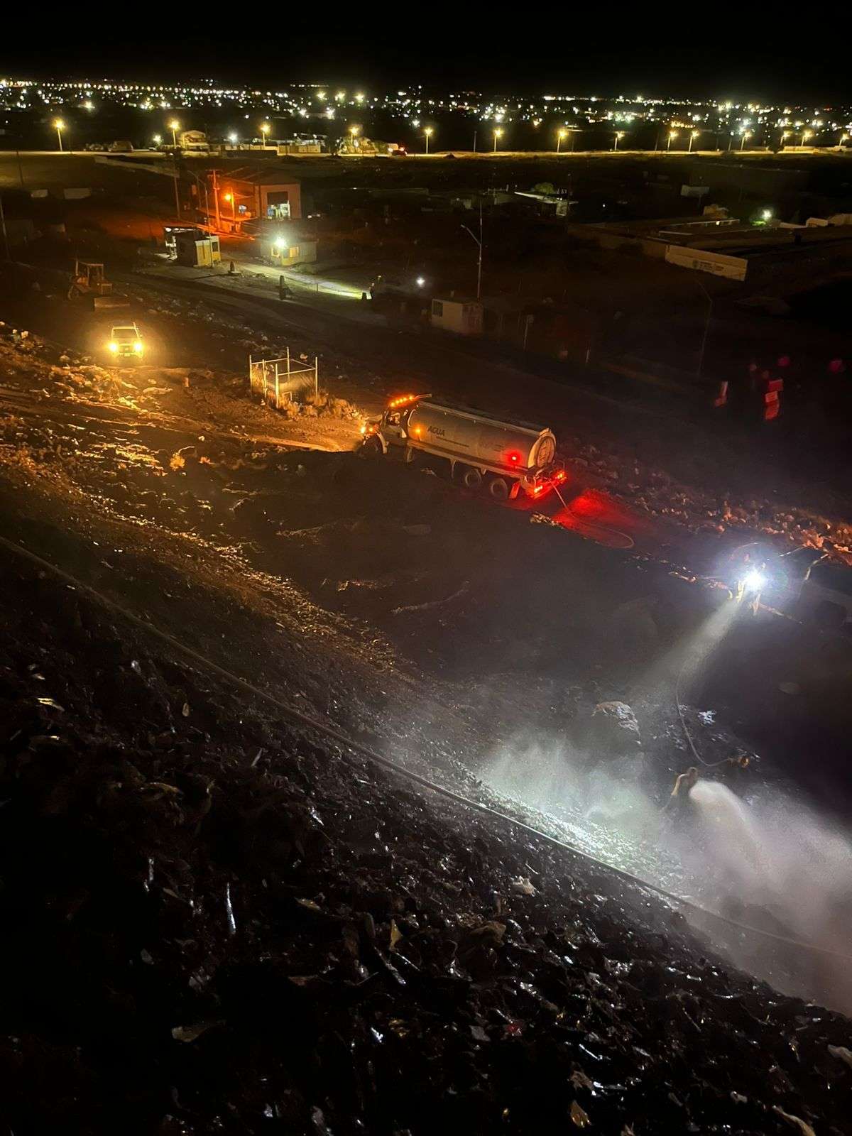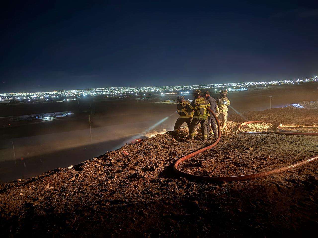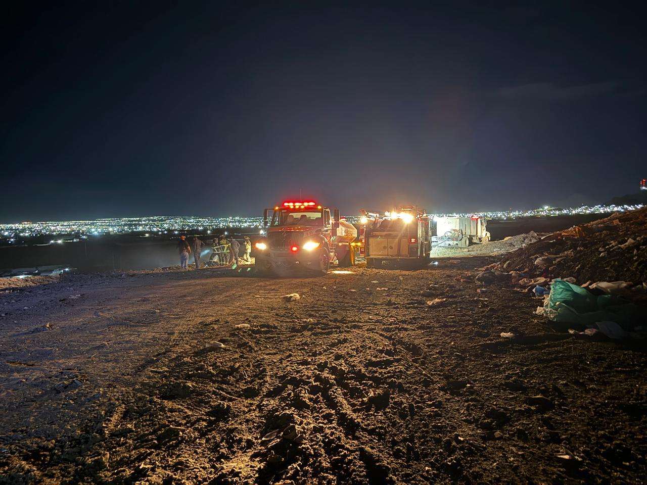 Chihuahua.- Elementos del Heroico Cuerpo de Bomberos lograron controlar y extinguir un incendio registrado en el perímetro de ingreso al Relleno Sanitario Municipal, evitando que las llamas se propagaran a otras celdas de desecho.