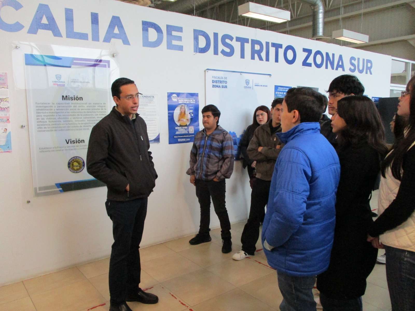 Chihuahua.- Con el propósito de fortalecer su formación académica y ampliar sus conocimientos en el ámbito jurídico, 65 estudiantes de sexto semestre del plantel número 12 del Colegio de Bachilleres, que cursan la asignatura propedéutica de Derecho, realizaron una visita a las instalaciones de la Fiscalía de Distrito Zona Sur.