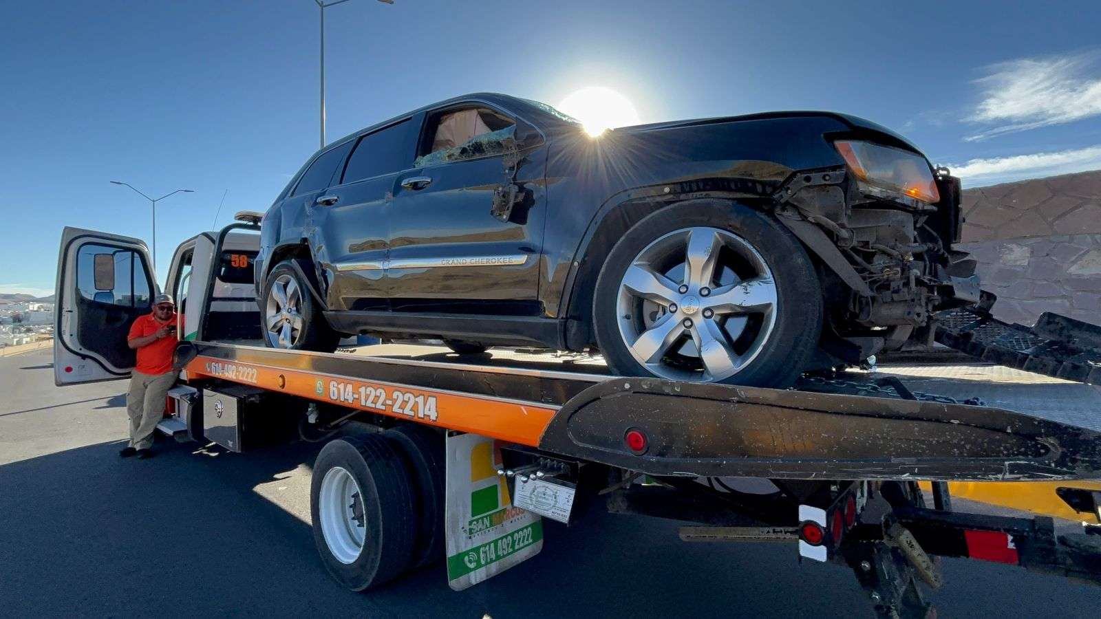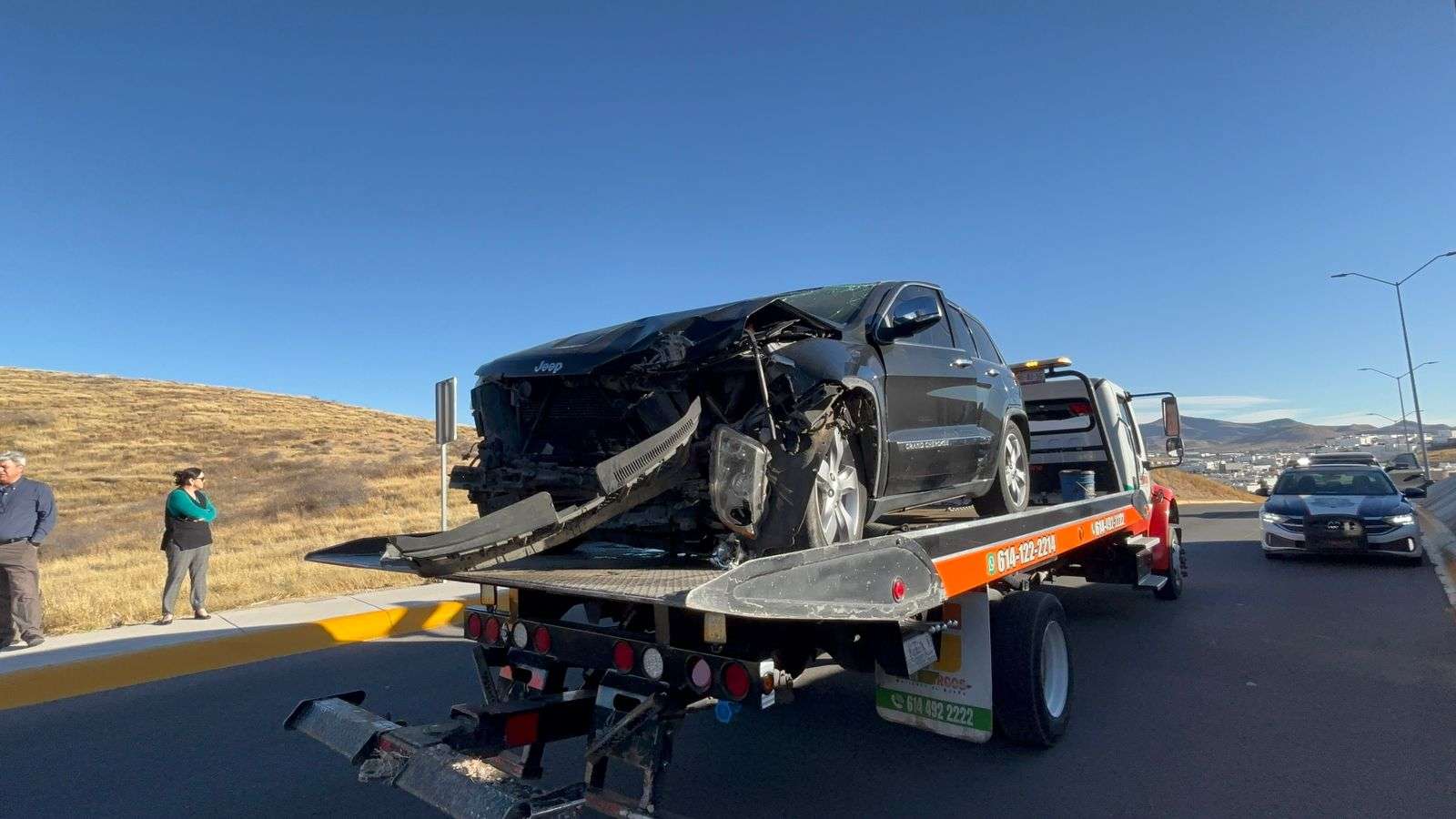 Chihuahua, Chih.- El conductor de una camioneta Grand Cherokee perdió el control cuando circulaba en sentido de sur a norte sobre la avenida Tomas Valles.