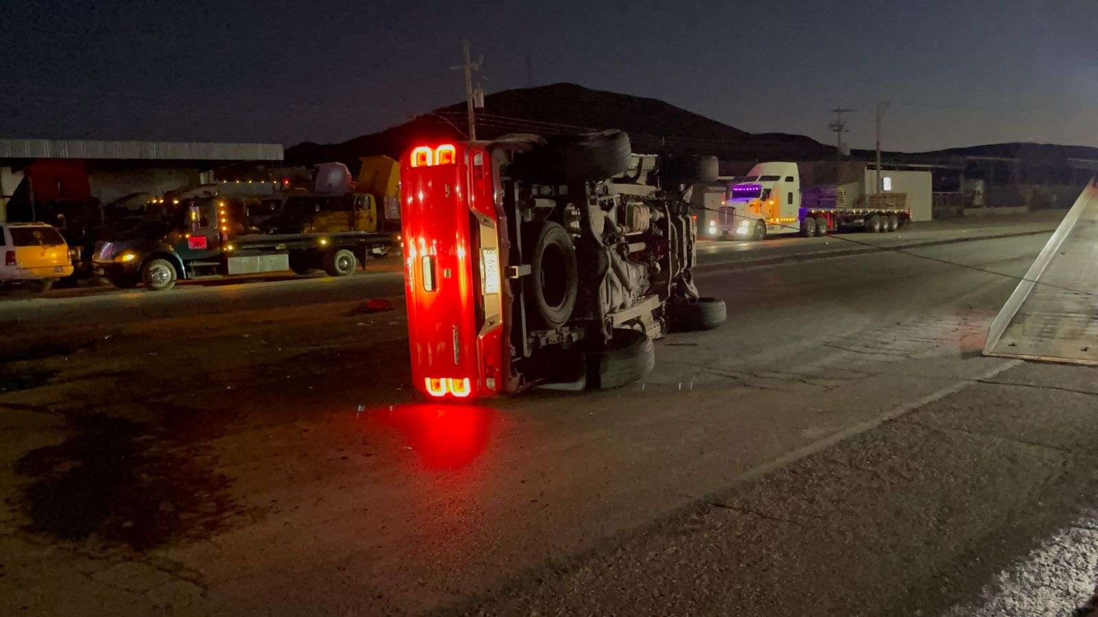 Vuelca camioneta tras fuerte choque en carretera a Cuauhtémoc
