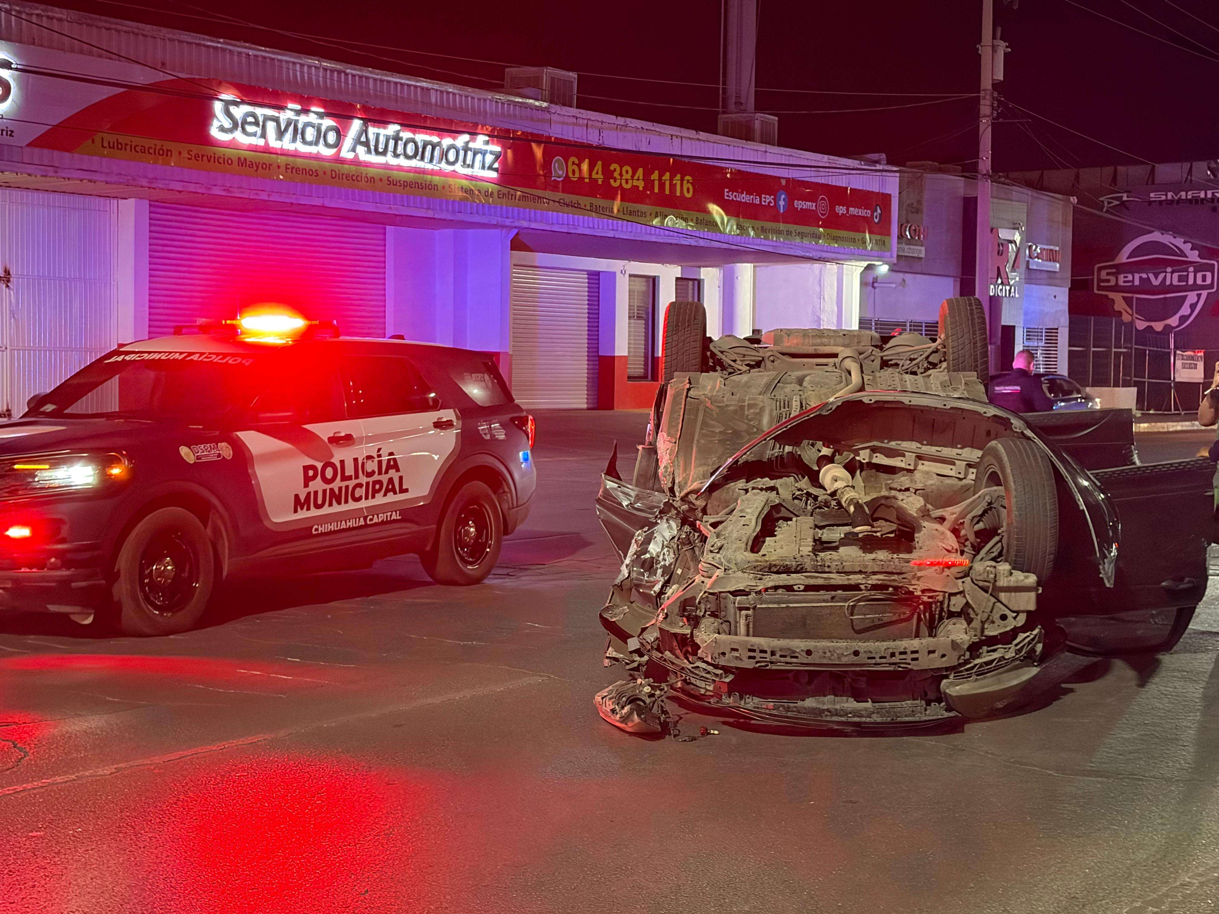 Chihuahua. - Una mujer resultó lesionada la madrugada de este domingo tras un aparatoso accidente vial sobre el Periférico de la Juventud, a la altura de la calle Universidad de Guadalajara, en la colonia Universidad.
