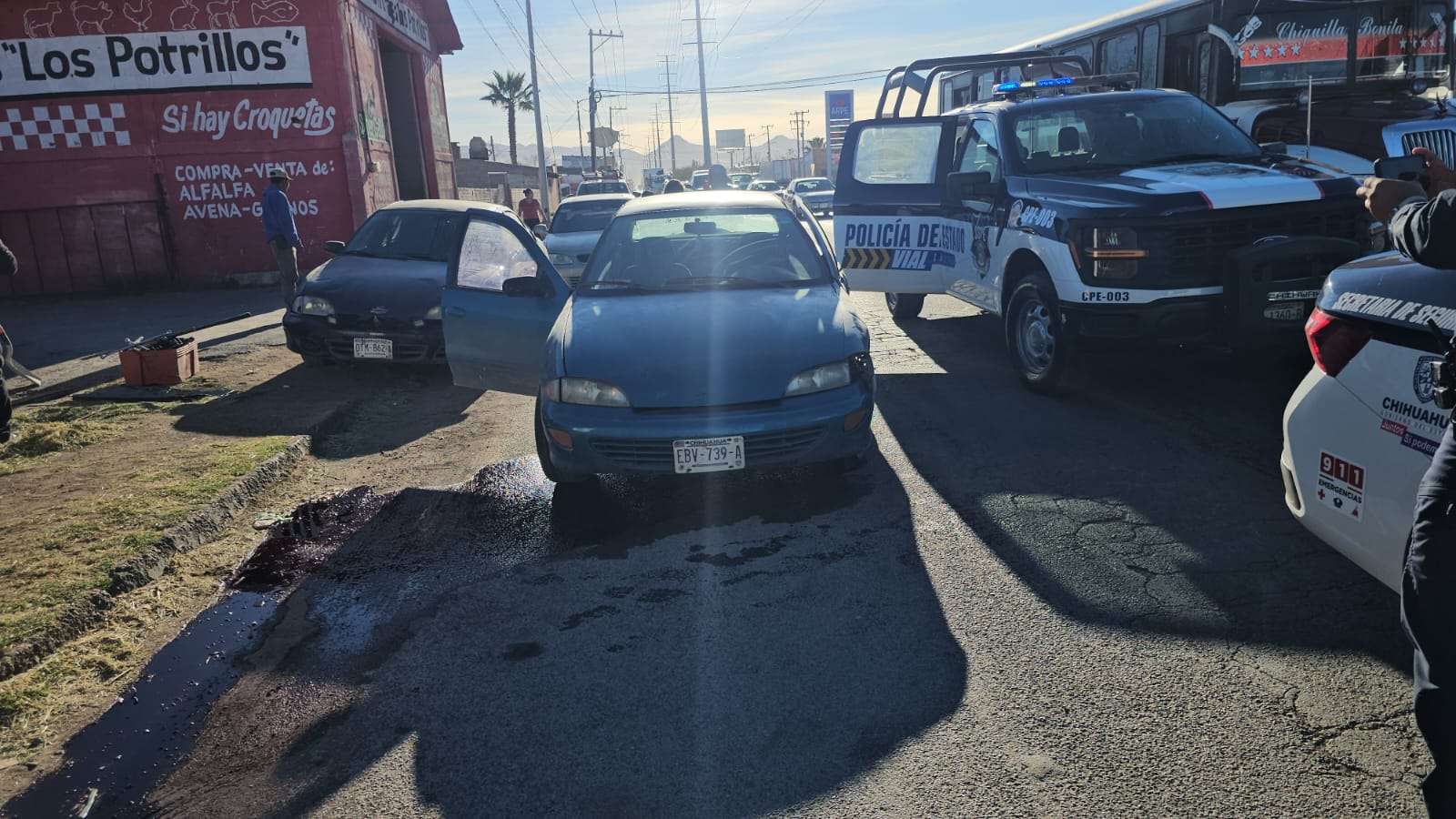De acuerdo con los primeros reportes, el conductor del automóvil presuntamente le cerró el paso a la unidad oficial, una Ford F-150, lo que provocó que esta perdiera el control, se volcara sobre su costado izquierdo y terminara impactándose contra un poste de la Comisión Federal de Electricidad, el cual fue derribado.