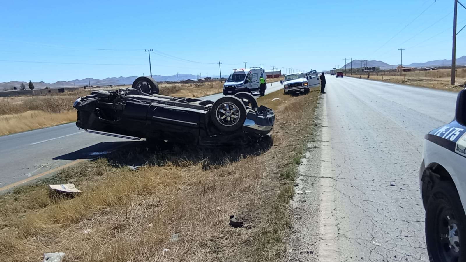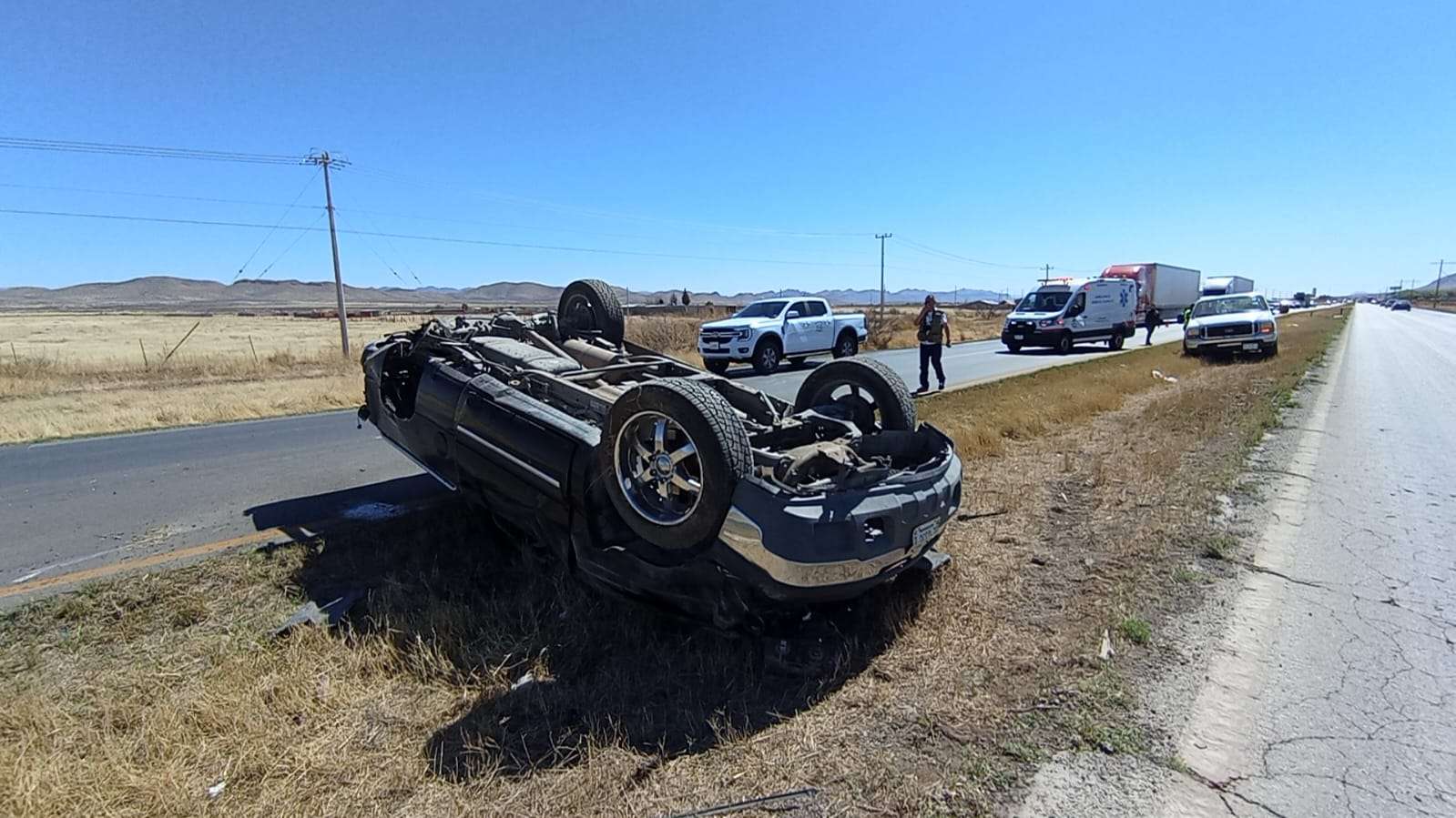 Chihuahua.- Un hombre de 61 años resultó con golpes luego de sufrir una volcadura en la carretera que conduce de Ciudad Juárez a Chihuahua, a la altura del kilómetro 36.