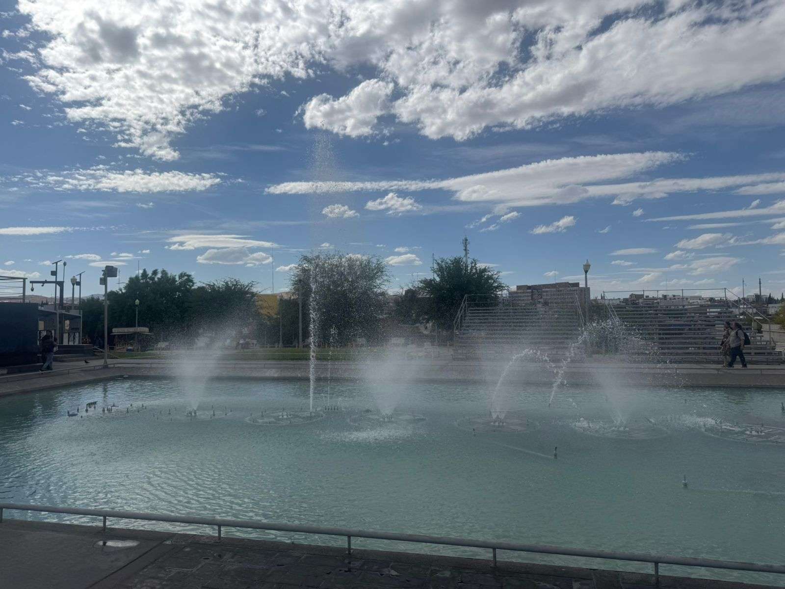 Chihuahua.- Las Fuentes Danzarinas volvieron a la vida esta tarde de viernes, captando de inmediato la atención de los chihuahuenses que paseaban por el Centro Histórico.