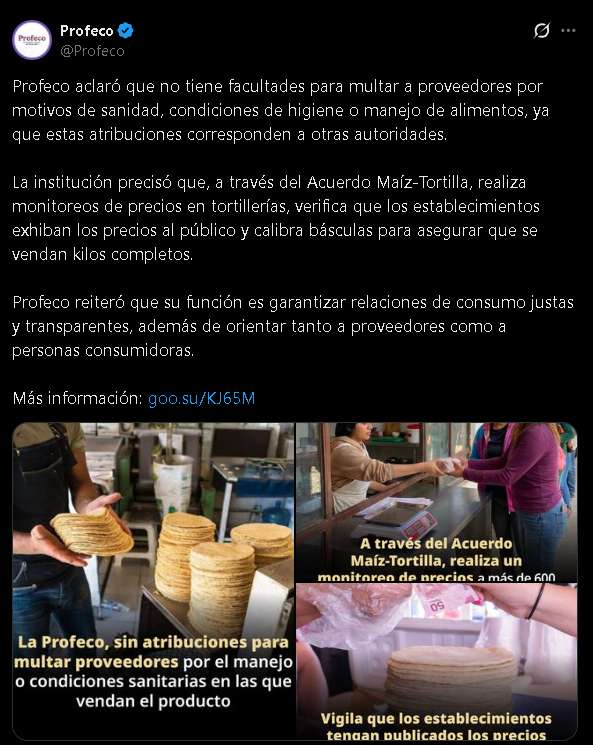 Es decir, la Profeco no puede imponer las multas difundidas anteriormente, por la situación de venta de tortillas en hielera en Tamaulipas.
