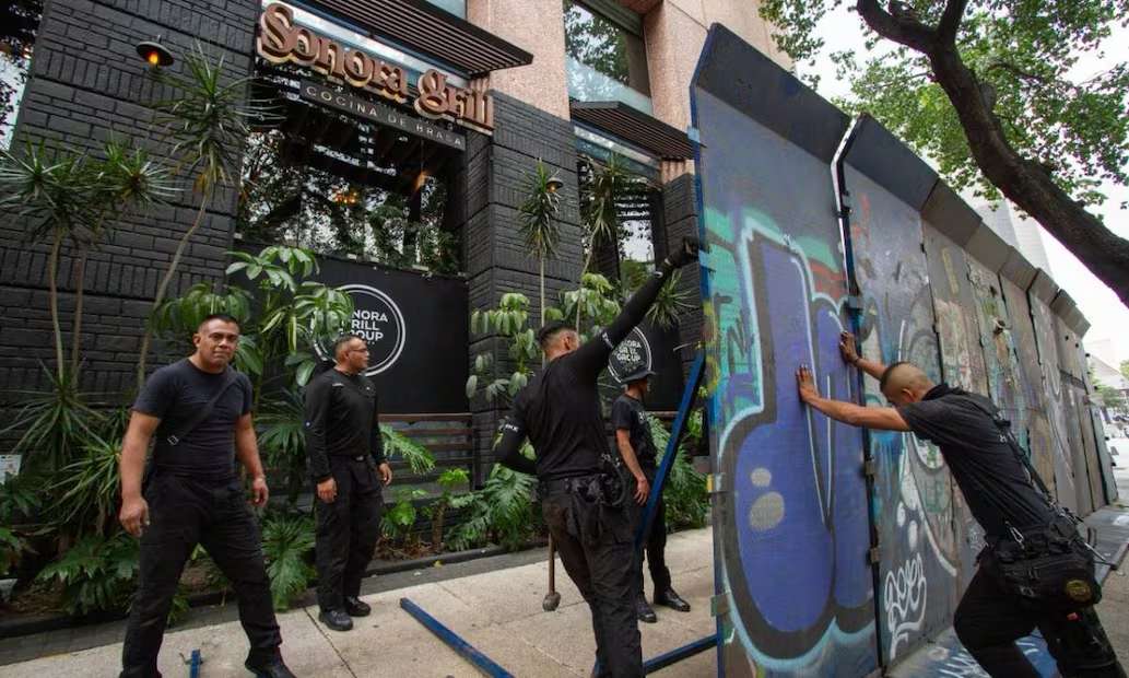 También el Palacio de Bellas Artes fue blindado con las barreras de acero, así como sus monumentos históricos.