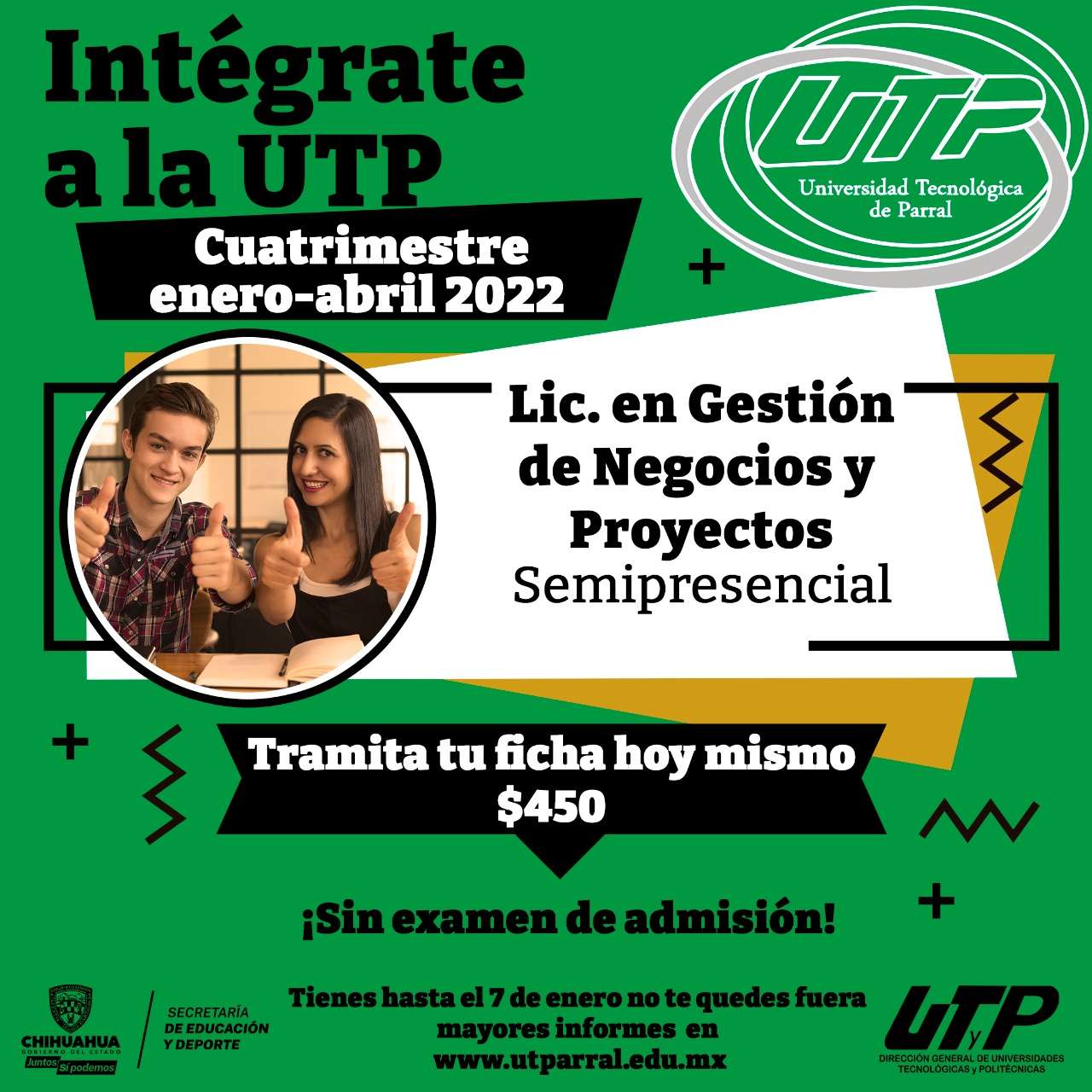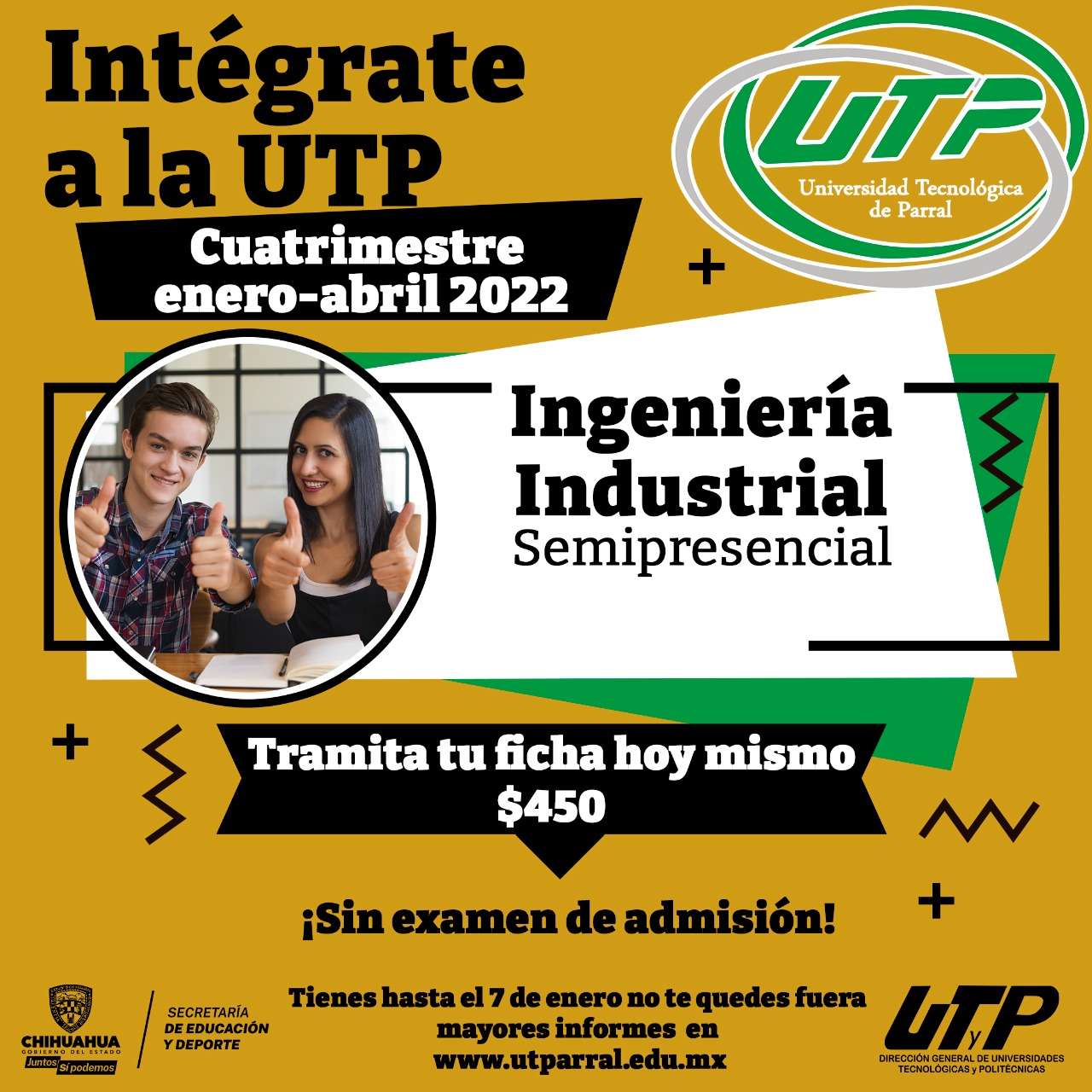 Parral.- La Universidad Tecnológica de Parral (UTP) inició la entrega de fichas de nuevo ingreso para el cuatrimestre enero-abril 2022, en los programas académicos de Ingeniería Industrial y Licenciatura en Gestión de Negocios.