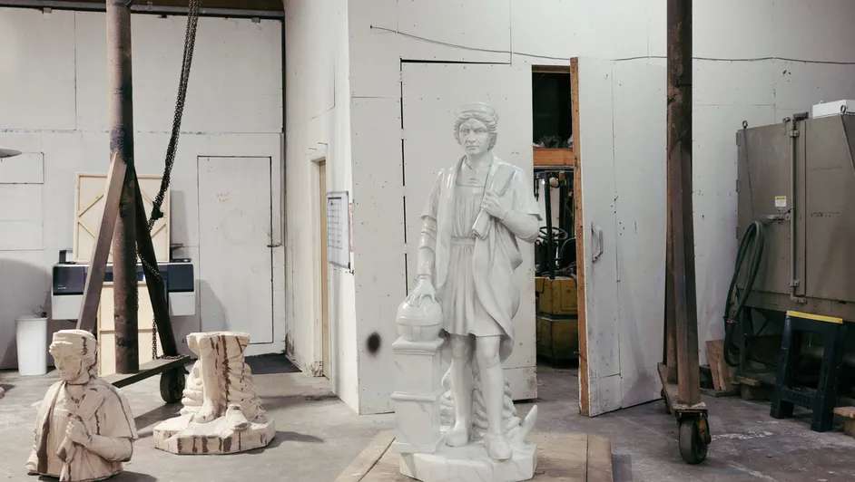 En Baltimore, donde los manifestantes derribaron la estatua de Colón en 2020 y la arrojaron al Inner Harbor, los trozos rotos han sido recuperados y utilizados para guiar la creación de una réplica.