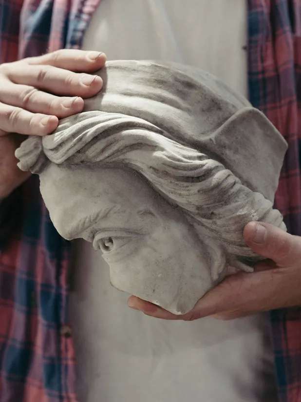 La estatua de Colón que una vez estuvo en Baltimore sigue siendo una colección de piezas de mármol rotas, almacenadas en el estudio de un artista en Maryland.